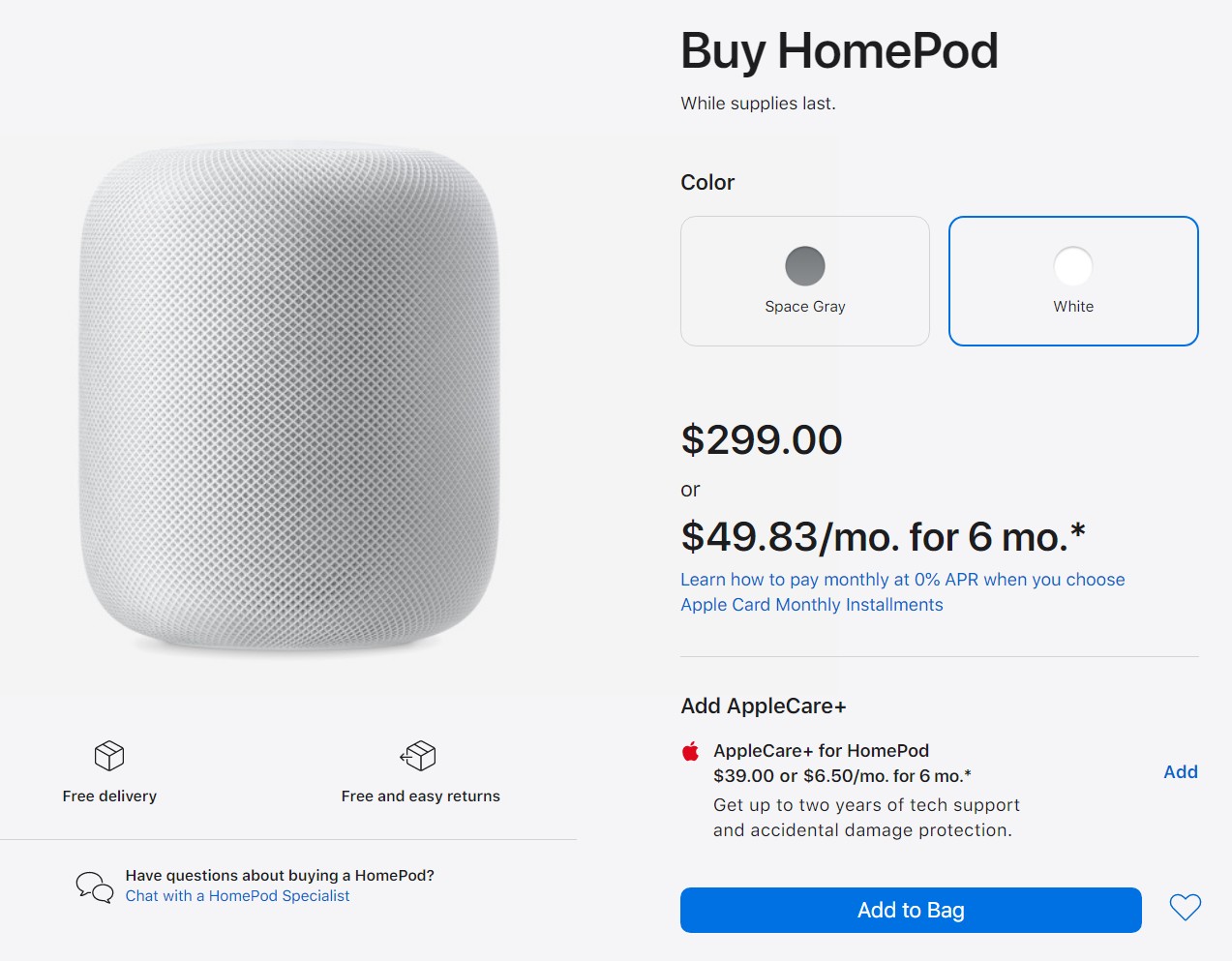 판매 중인데 이미 스페이스 그래이는 품절 상태이고 현재는 화이트 색상만 구매가 가능합니다.