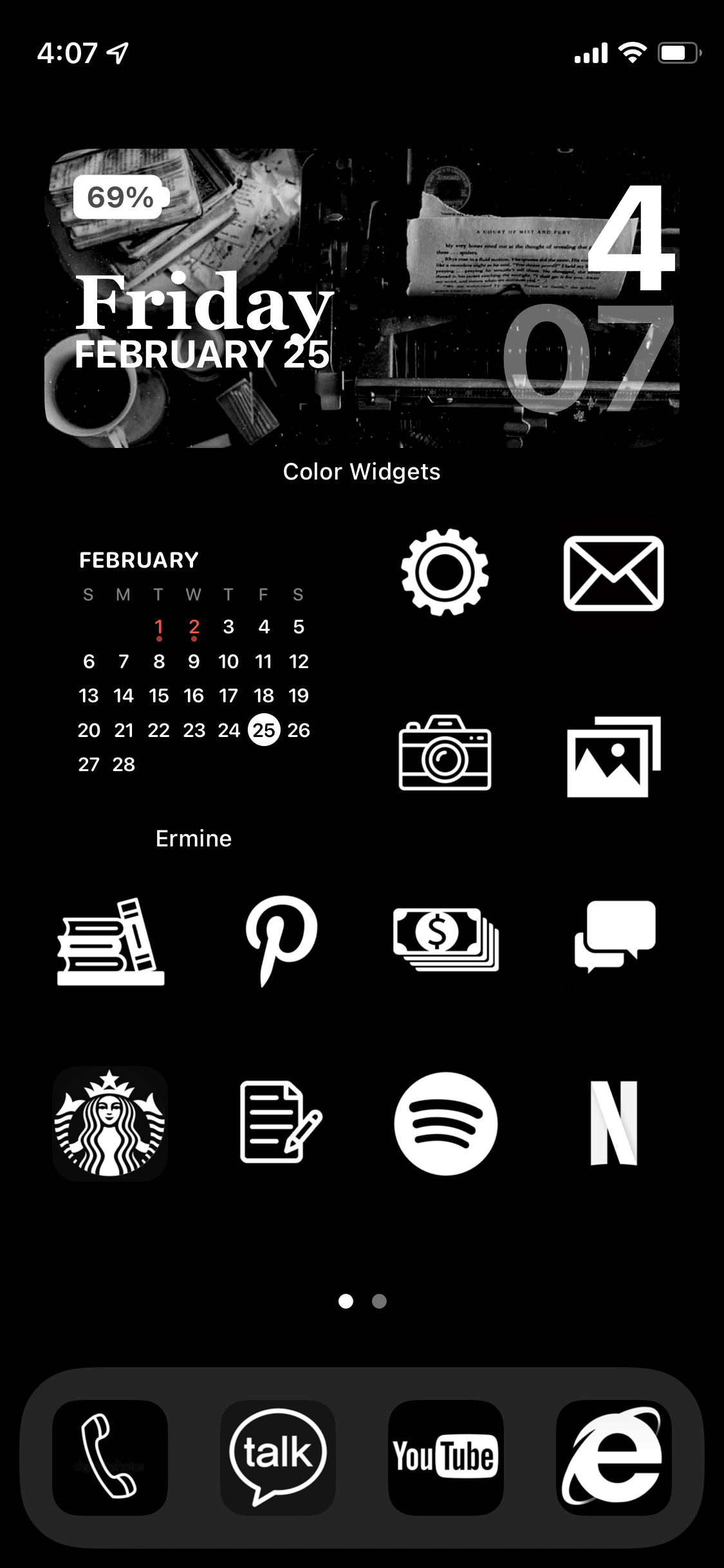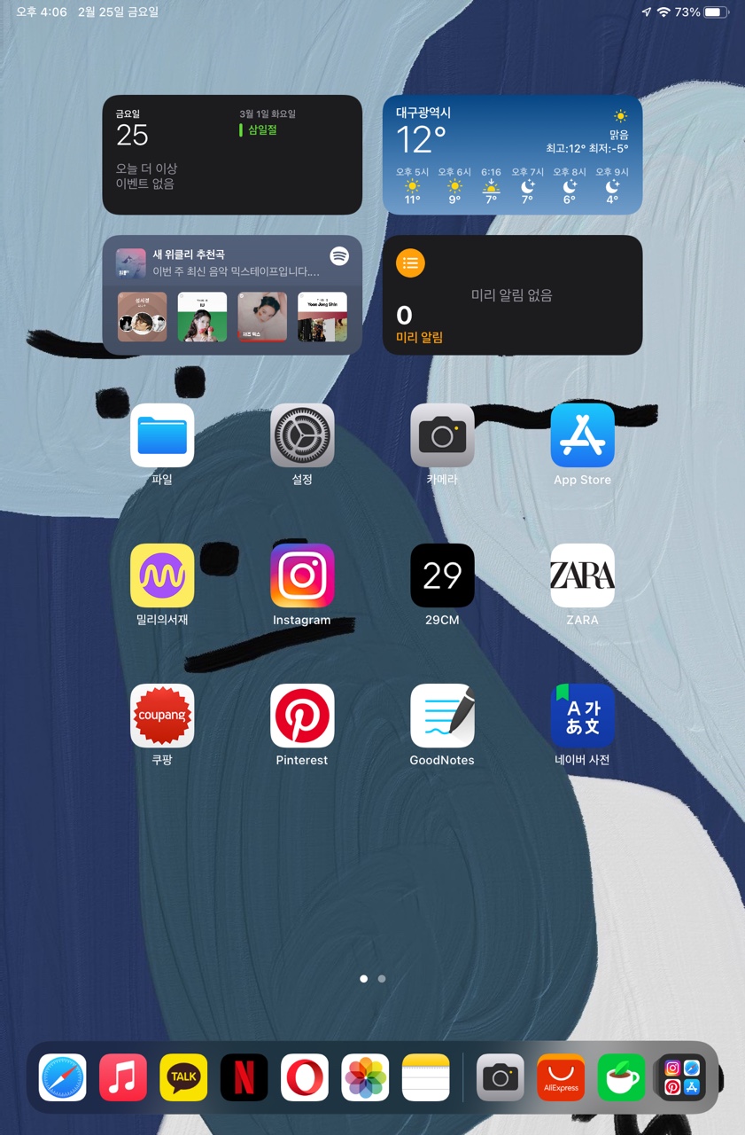 거의 흑백처럼 정리해놓고 쓰고 있는데 아이패드는 LCD 패널이라서 검정이 OLED만큼 깔끔하게 표현되지 않아서